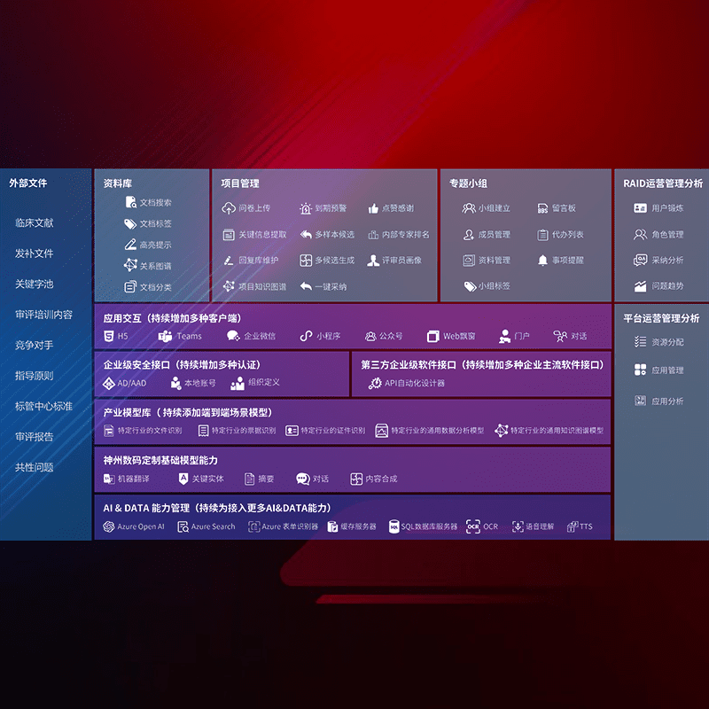 医疗器械产品上市前,,,,要熟悉严格与繁复评审标准,,,,整理分析监管机构指导文件中的海量信息。。。。企业急需一个智能化解决方案,,,提升知识管理效率,,,,提高评审通过率,,,以提升其市场竞争力。。。